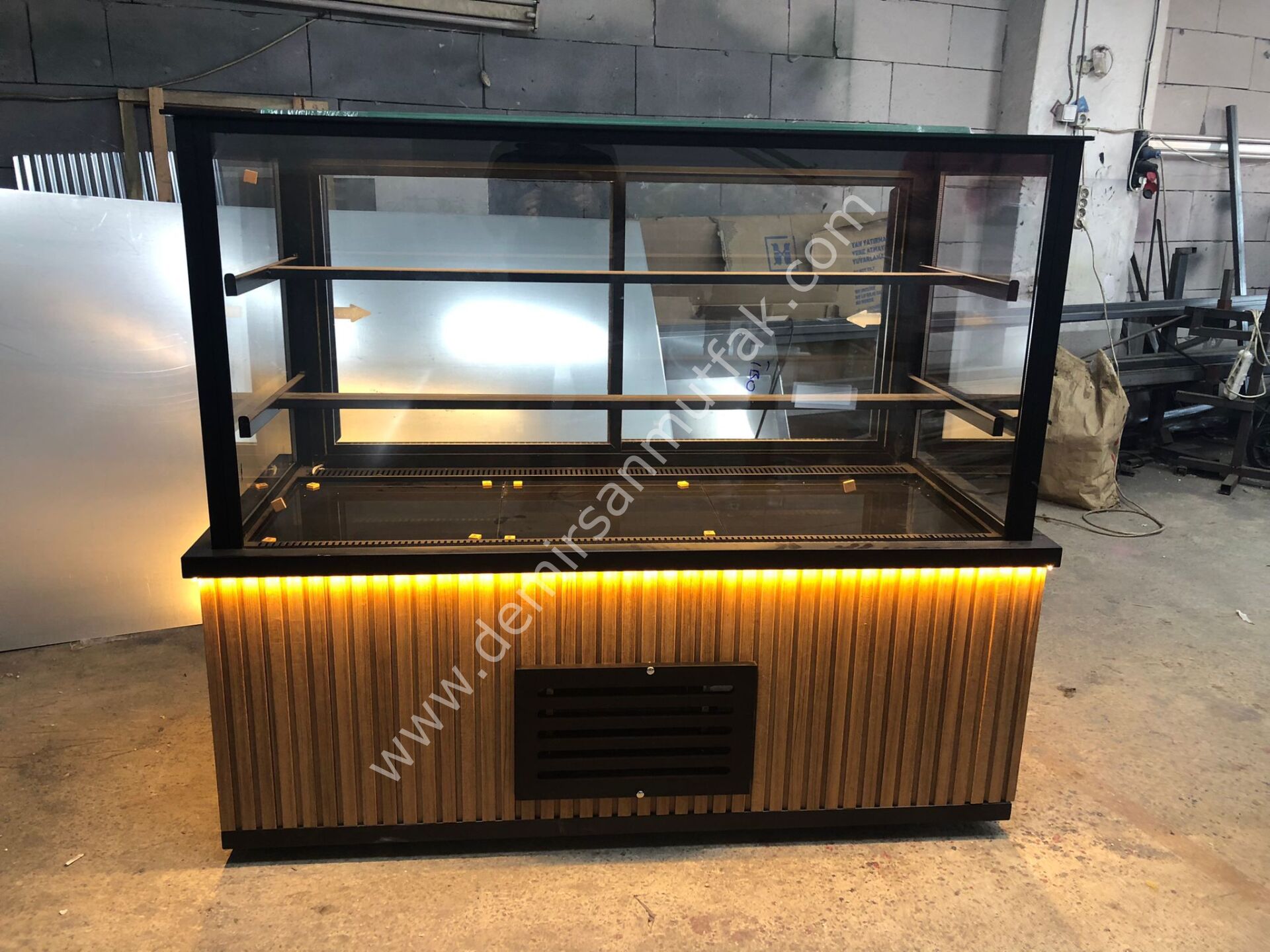 Geniş cam vitrin yapısı ve çok katlı raf sistemi; yaş pasta, kuru pasta, çikolata çeşitleri ve günlük tatlıların hijyenik şekilde sergilenmesine imkan tanır. İç aydınlatma, ürünlerin renklerini doğru yansıtarak müşteri dikkatini doğrudan vitrininize çeker ve satış potansiyelini artırır.