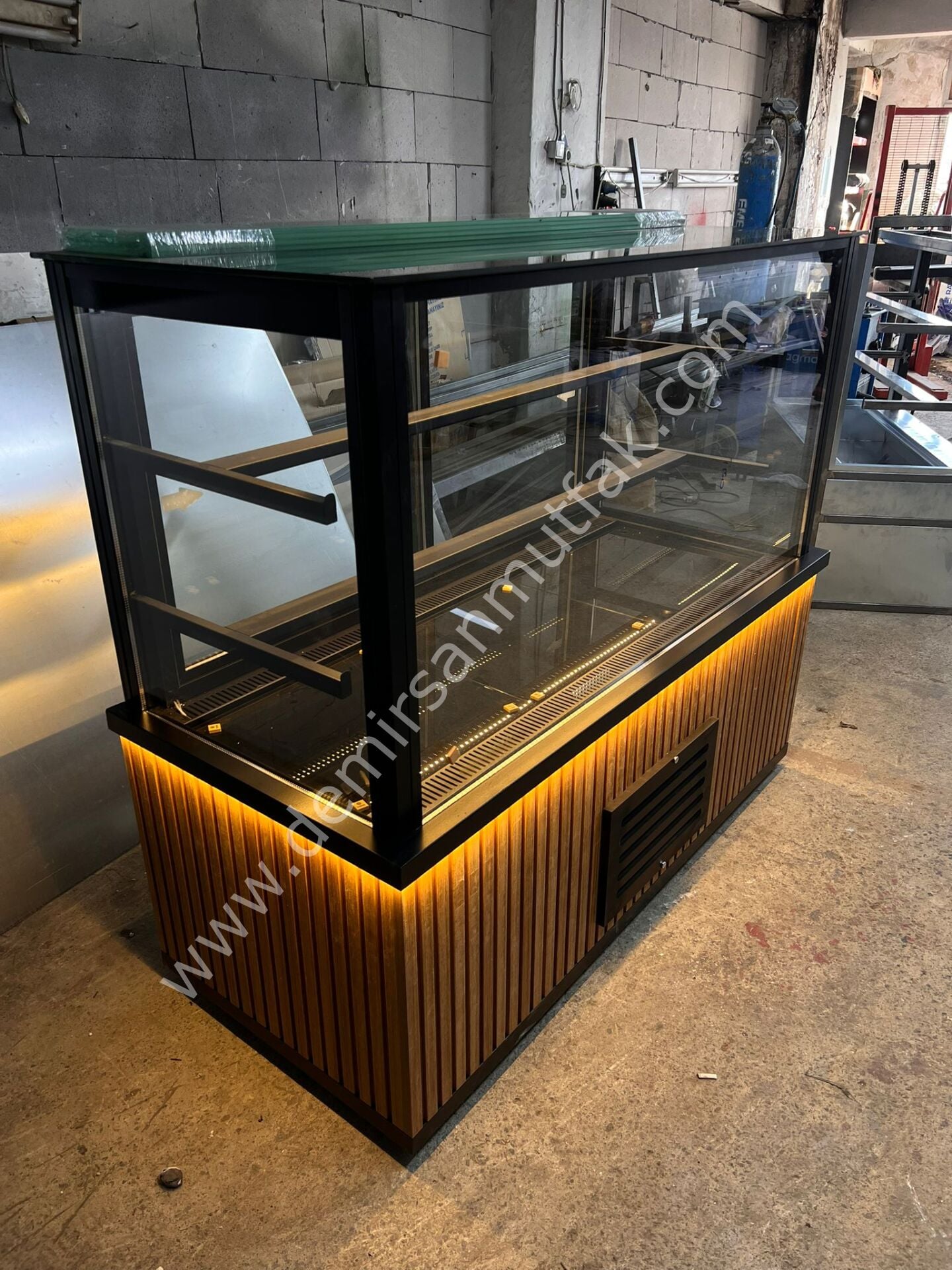 Modern tasarım anlayışıyla üretilen Ahşap Dekorlu Pasta Teşhir Dolabı DM047, sıcak ahşap dokusu ve güçlü LED aydınlatması ile pastane ve kafe konseptlerine doğal bir şıklık kazandırır. Ön panelde kullanılan dikey ahşap kaplama, mekana premium bir atmosfer katarken ürünlerin daha iştah açıcı görünmesini sağlar.