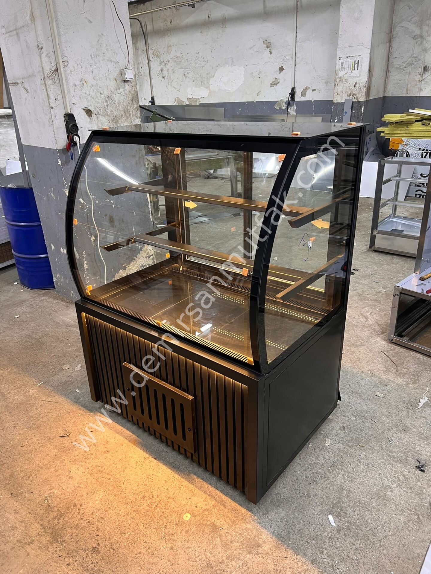 Modern Ahşap Dekorlu Pasta Tatlı Vitrin Dolabı | Profesyonel Pastane Teşhir Dolabı – DM027