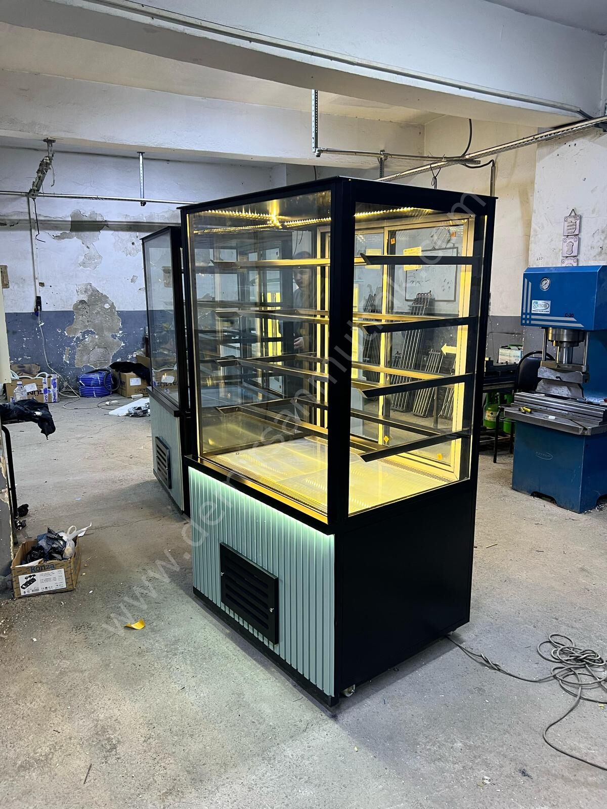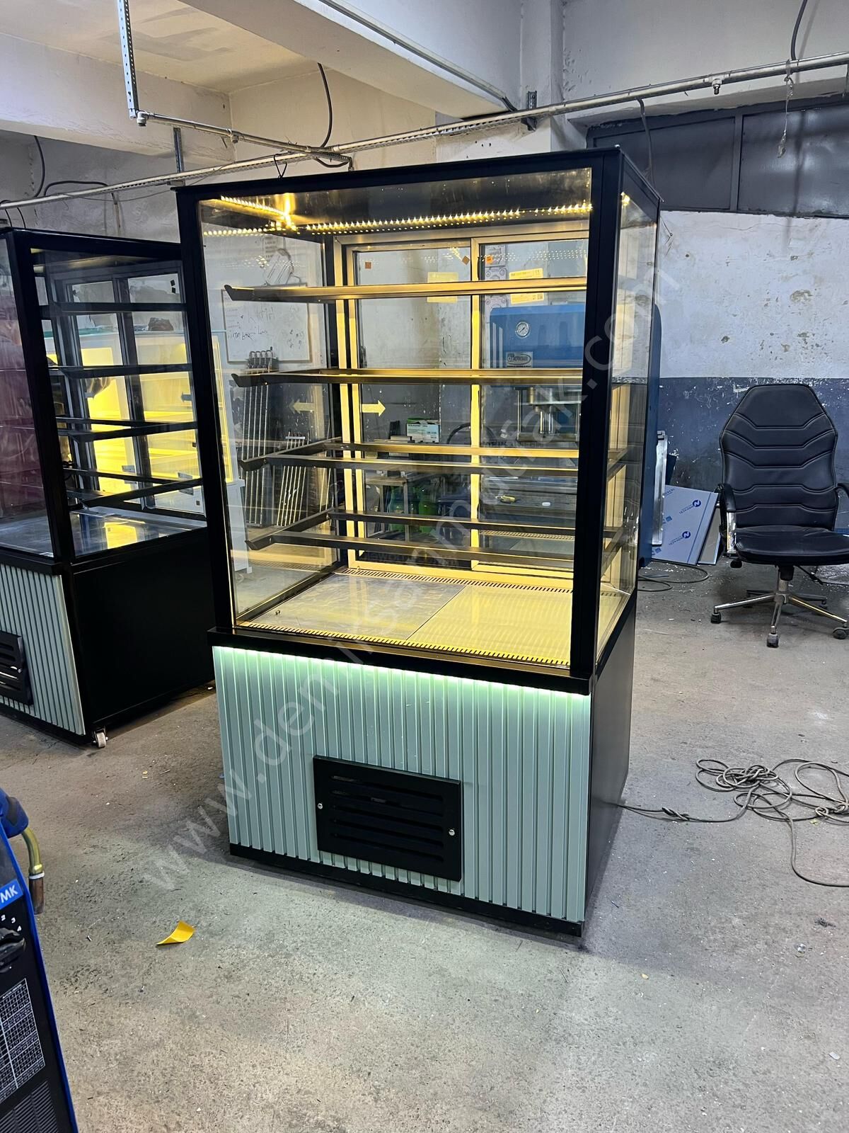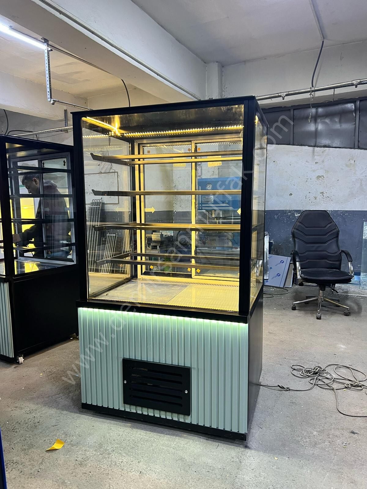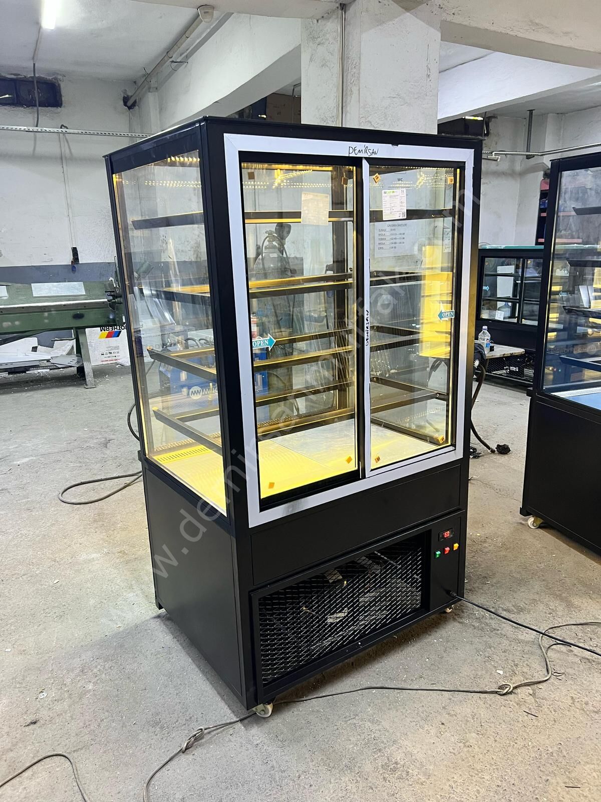 Modern Cam Tasarımlı Pasta Tatlı ve Kruvasan Teşhir Dolabı, pastane, kafe ve unlu mamul konseptli işletmelerde ürünlerinizi en estetik şekilde sergilemeniz için tasarlanmış profesyonel bir teşhir çözümüdür. Yüksek cam yapısı ve geniş iç hacmi sayesinde ürünleriniz her açıdan net biçimde görünür ve müşterilerin dikkatini anında çeker.