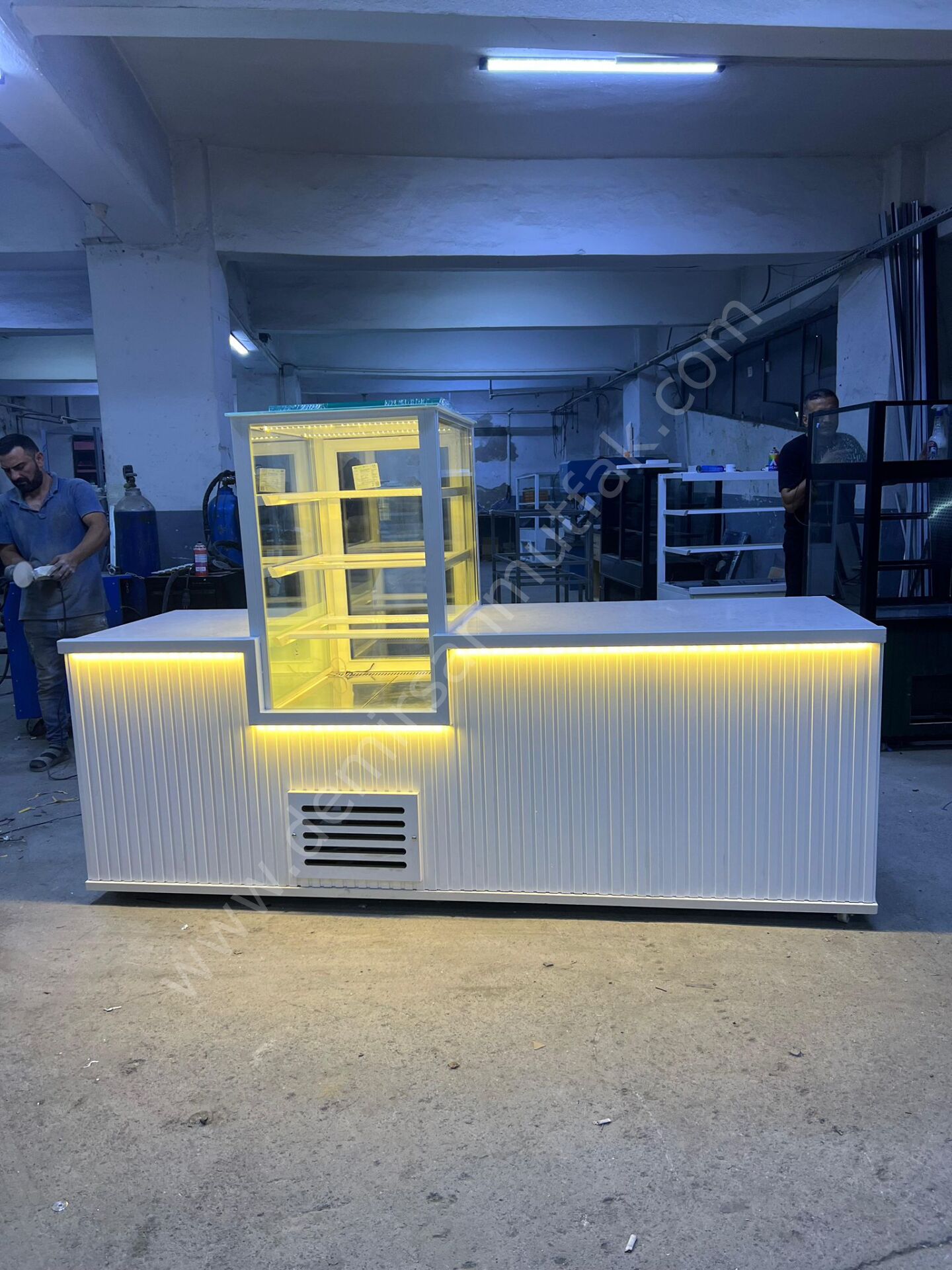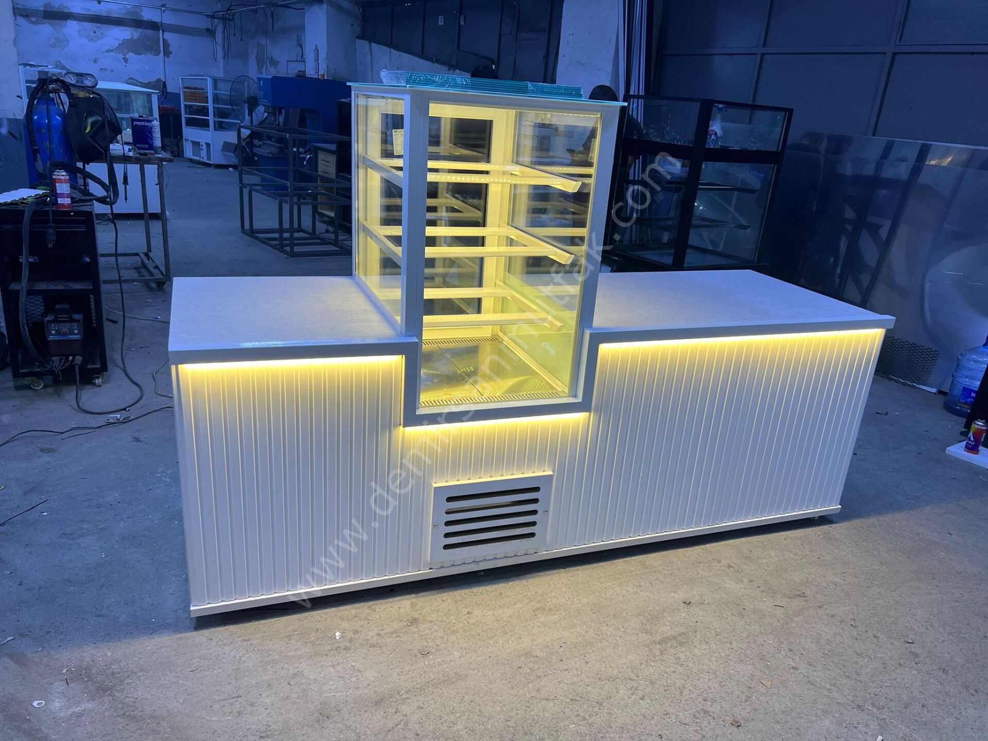 Orta vitrin tasarımıyla dikkat çeken pasta ve tatlı teşhir banko dolabı, ürünlerinizi mağazanın odak noktasına taşıyarak müşterilerin ilgisini ilk bakışta yakalamayı hedefleyen profesyonel bir teşhir çözümüdür. Merkezi konumlandırılmış cam vitrin yapısı sayesinde pasta ve tatlı çeşitleri her açıdan net şekilde görülebilir, böylece satış potansiyeli doğal olarak artar.
