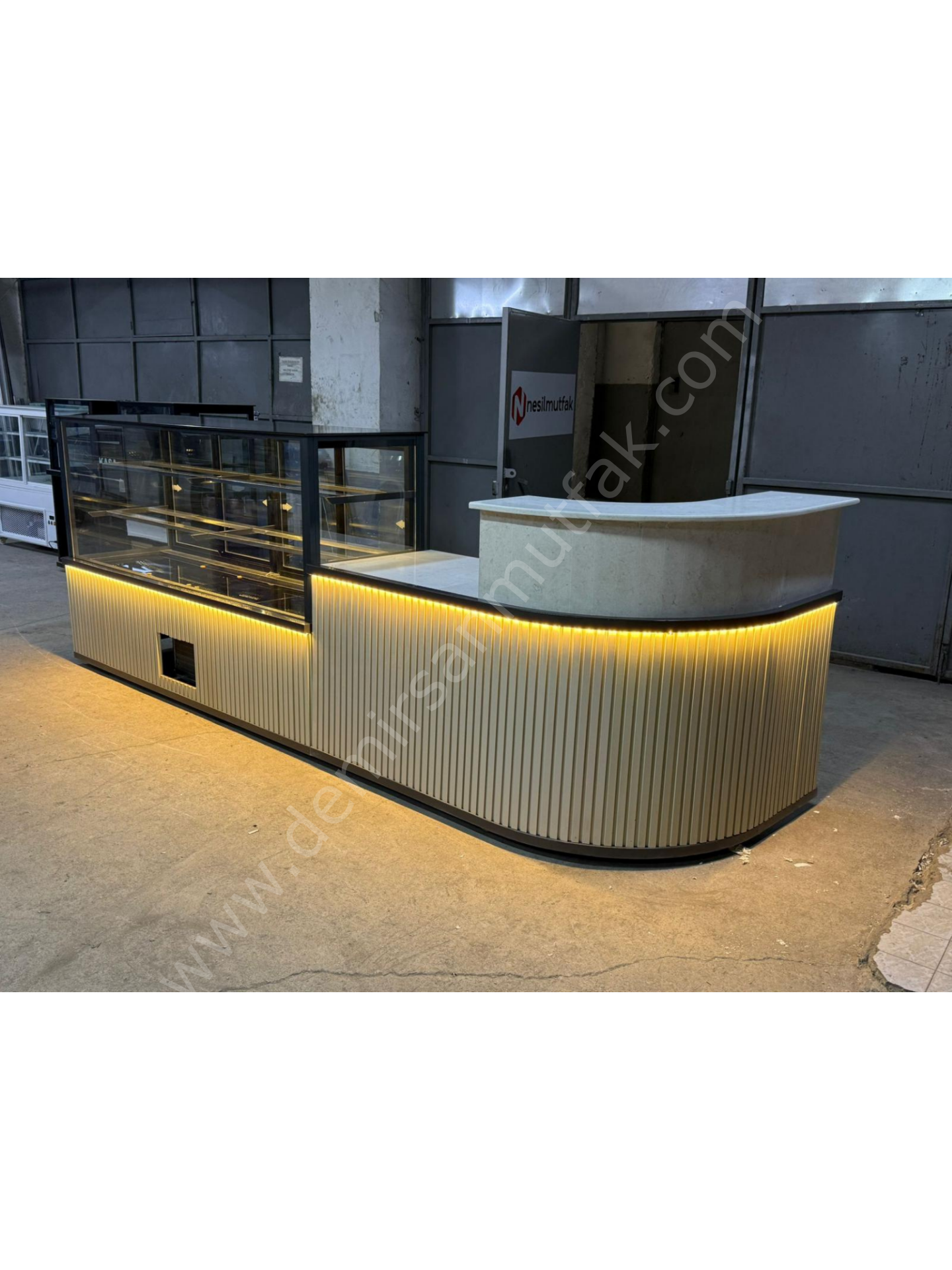 Modern pastaneler ve konsept kafeler için tasarlanan Oval Bankolu Premium Pasta Tatlı Teşhir Dolabı ve Servis Tezgahı, estetik görünümü ile fonksiyonelliği bir araya getirir. Oval hatlara sahip entegre banko yapısı, işletmenize prestijli bir karşılama alanı kazandırırken aynı zamanda satış ve servis süreçlerini daha akıcı hale getirir.