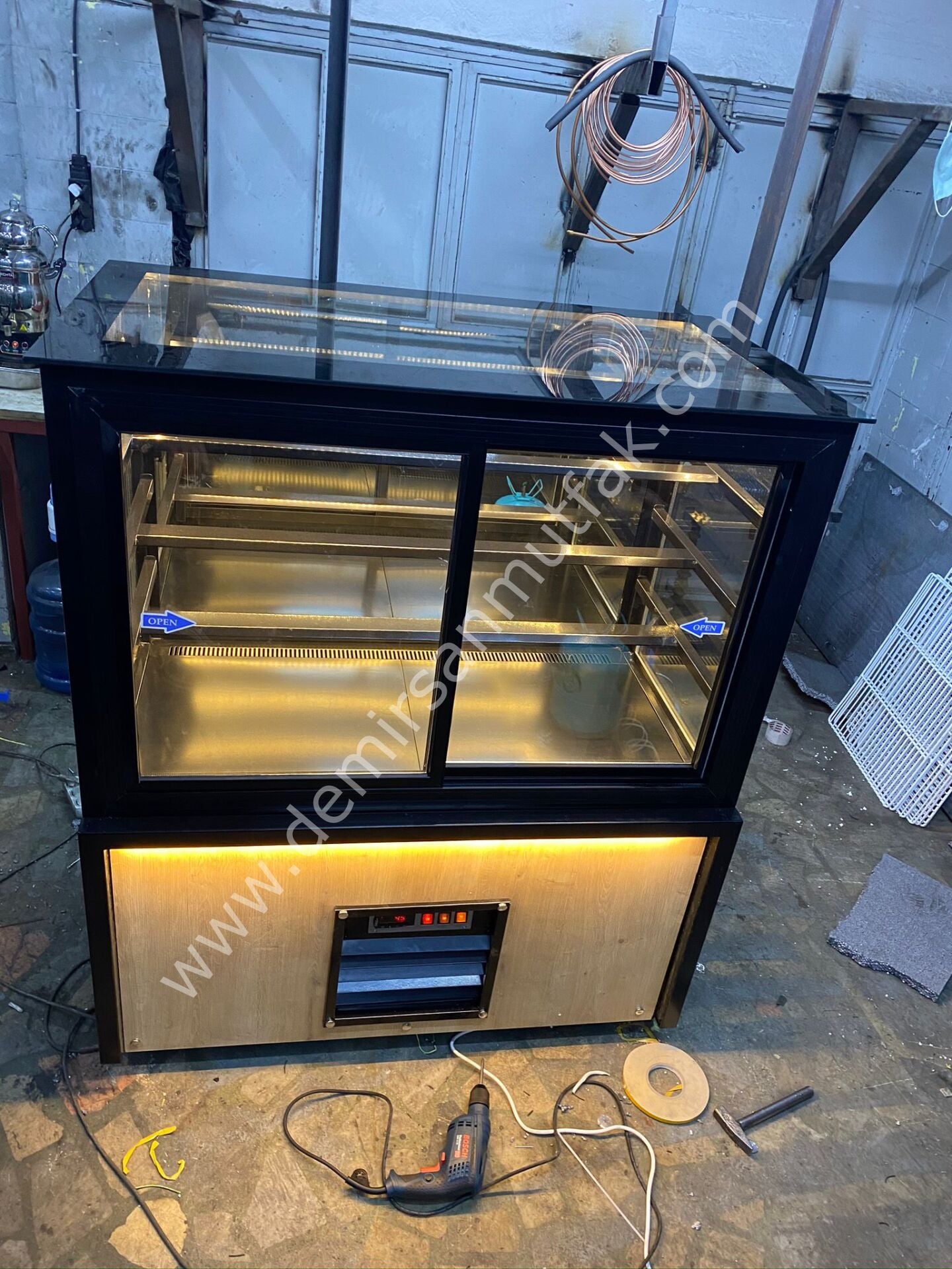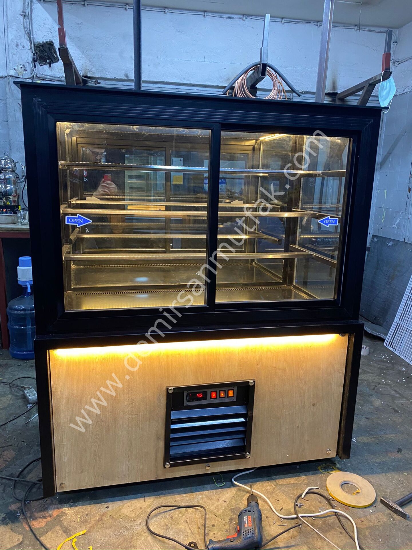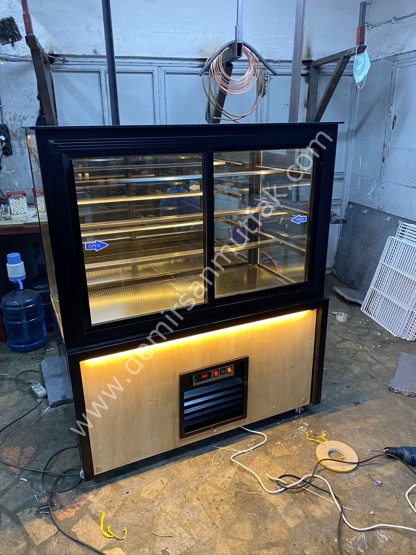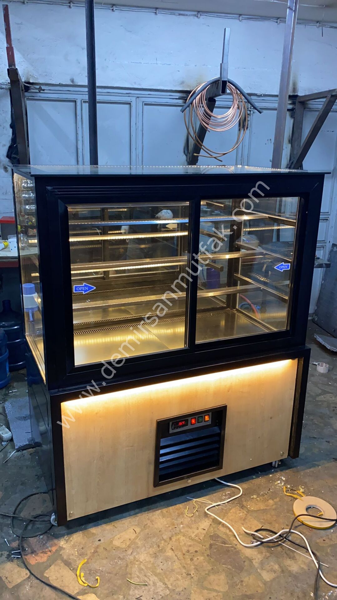 Siyah çerçeve ile güçlendirilen dış tasarım, alt bölümde kullanılan doğal ahşap görünümlü panel ve sıcak LED aydınlatma ile birleşerek işletmenize premium bir atmosfer kazandırır. Özellikle müşteri ile ürün arasında güçlü bir görsel bağ kuran bu tasarım dili, vitrin önünde geçirilen süreyi artırarak satış ihtimalini yükseltir. Günümüzde tüketiciler yalnızca lezzete değil, sunum kalitesine de önem verdiği için doğru teşhir ekipmanı marka algısını önemli ölçüde güçlendirir.