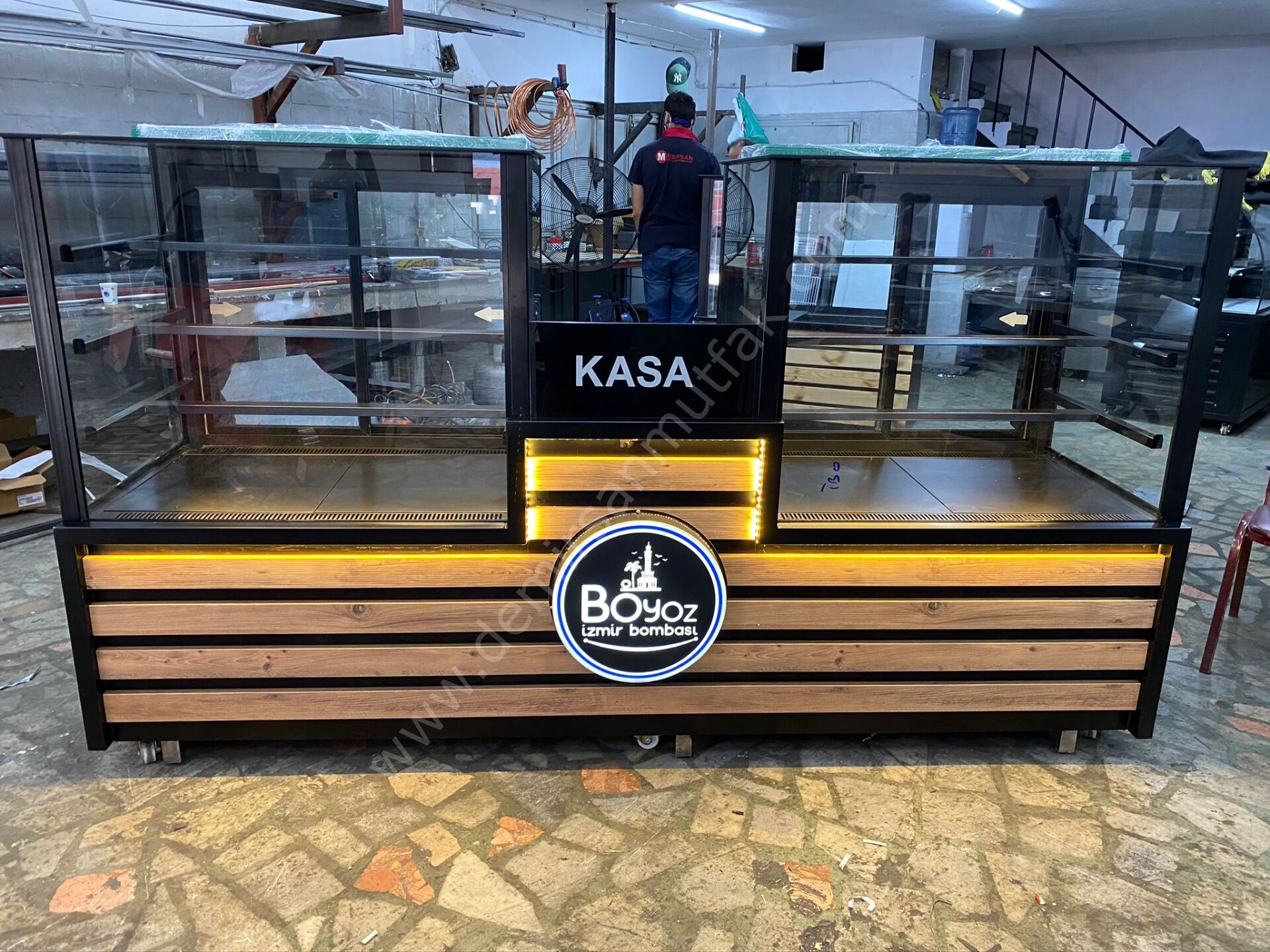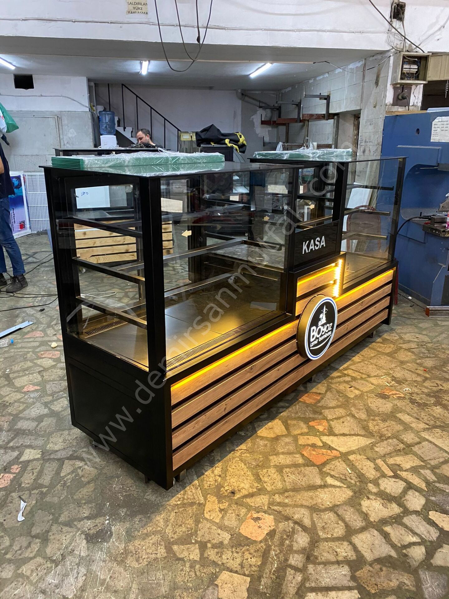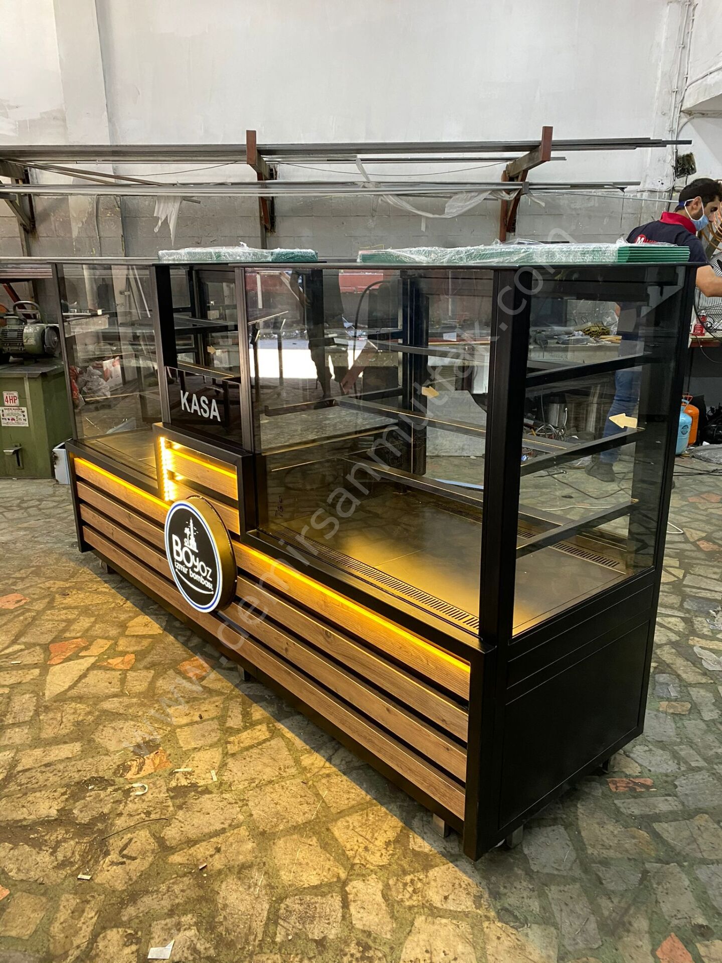 Merkezi konumlandırılmış kasa bölümü, servis sürecini hızlandırırken müşteri ile personel arasındaki etkileşimi daha pratik hale getirir. Temperli cam paneller ürün görünürlüğünü maksimum seviyeye çıkarırken, iç LED aydınlatma sergilenen ürünlerin renklerini daha canlı göstererek satın alma isteğini artırır.