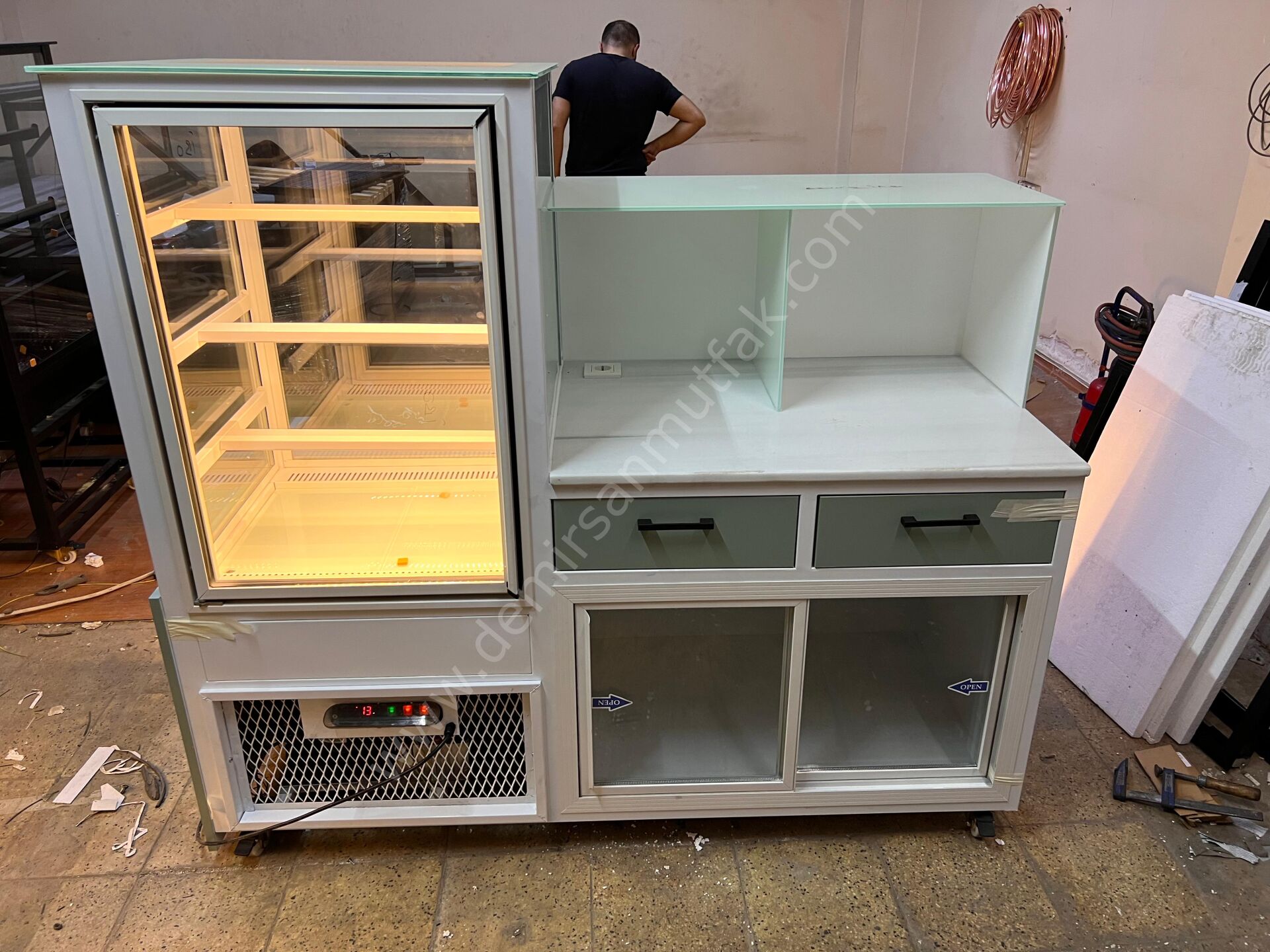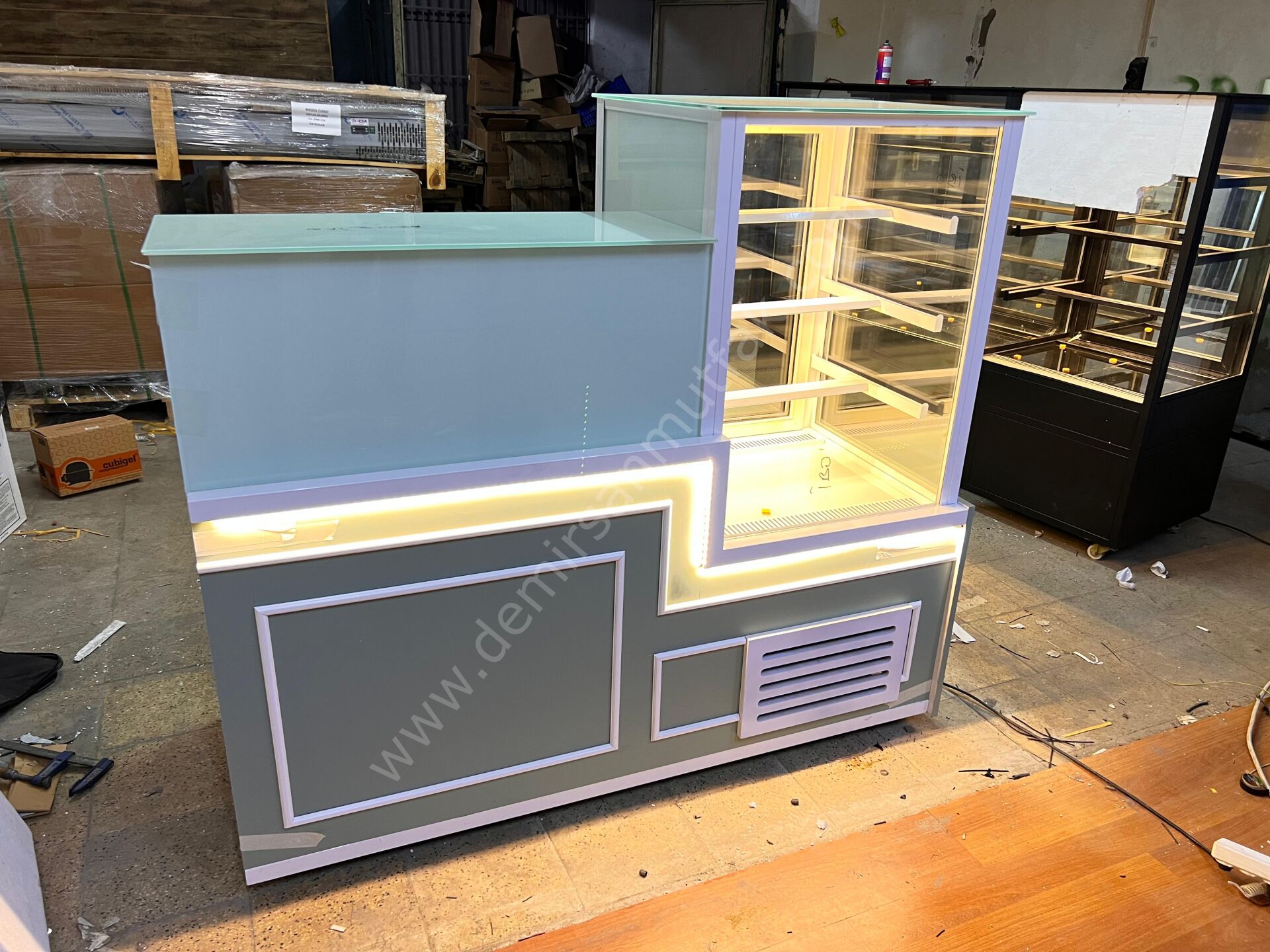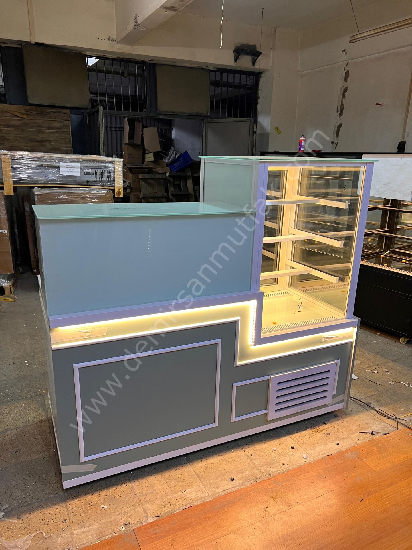 Banko formunda tasarlanan üst çalışma alanı, servis sürecini daha pratik hale getirir ve personelin operasyon hızını yükseltir. Sipariş hazırlama, paketleme veya kasa yerleşimi gibi günlük işlemler için ergonomik bir kullanım sunan bu model, işletme içi düzeni korumaya yardımcı olur. Kompakt yapısına rağmen geniş teşhir hacmi sunması, sınırlı alana sahip işletmeler için önemli bir avantaj sağlar.