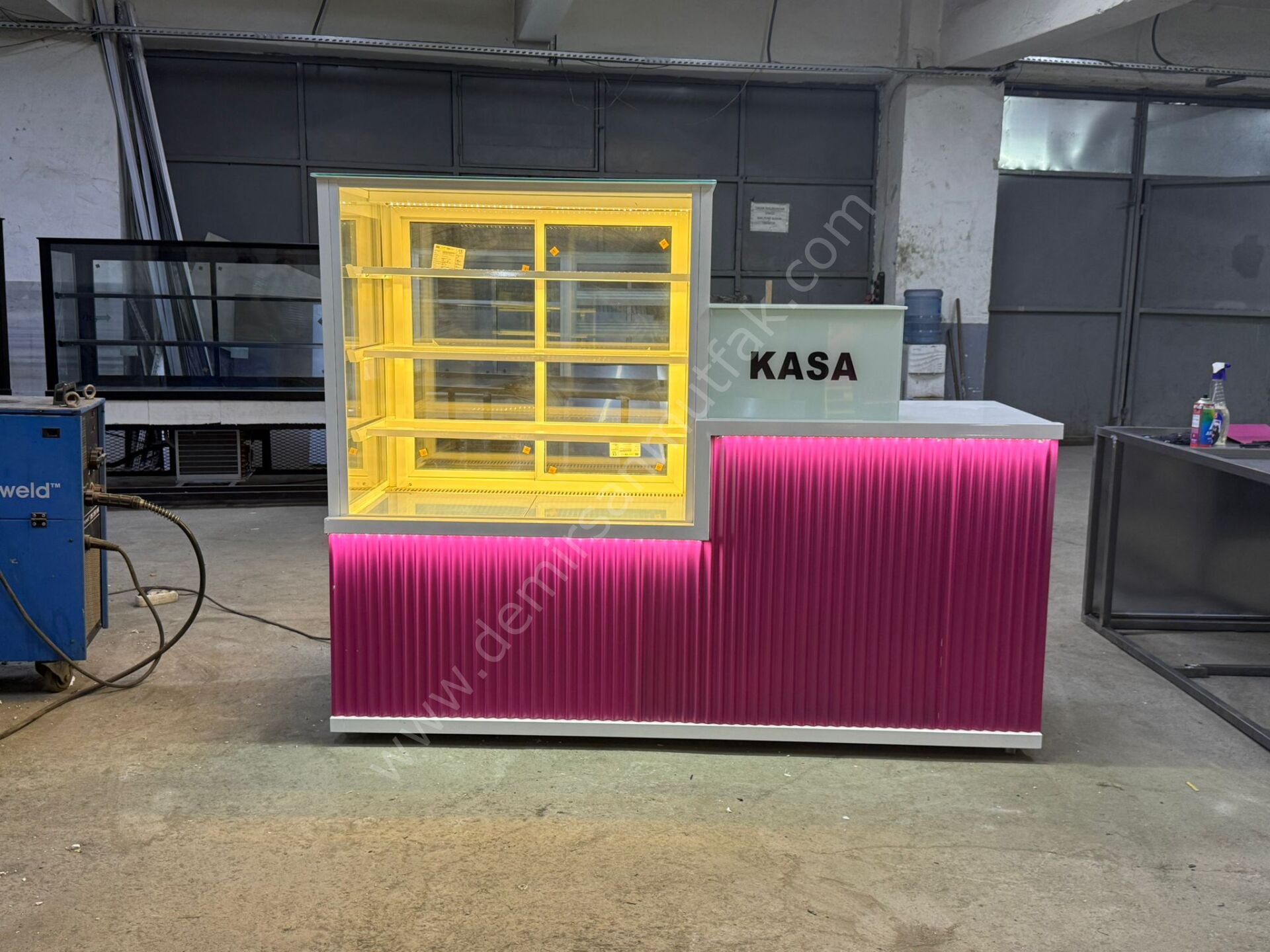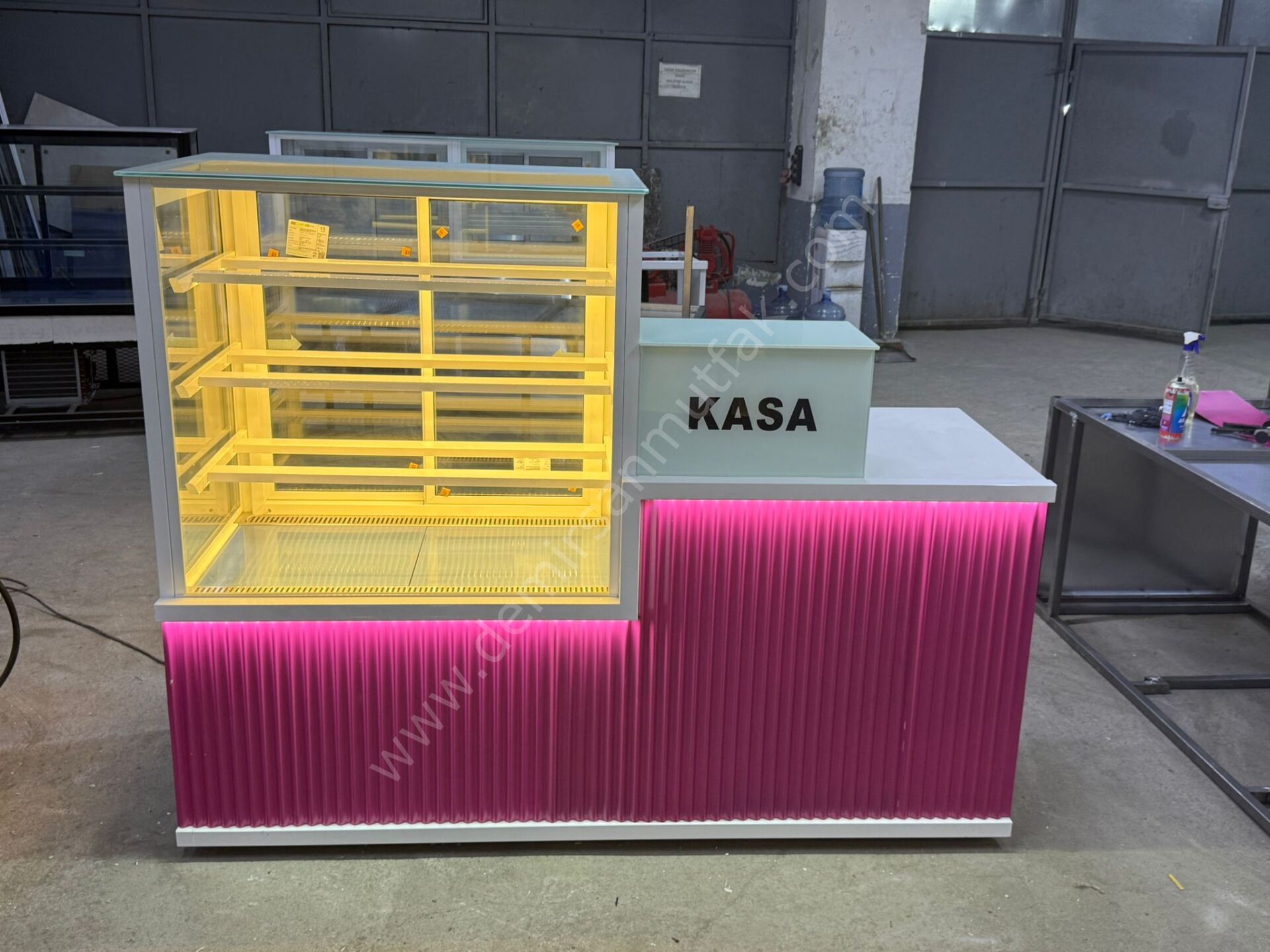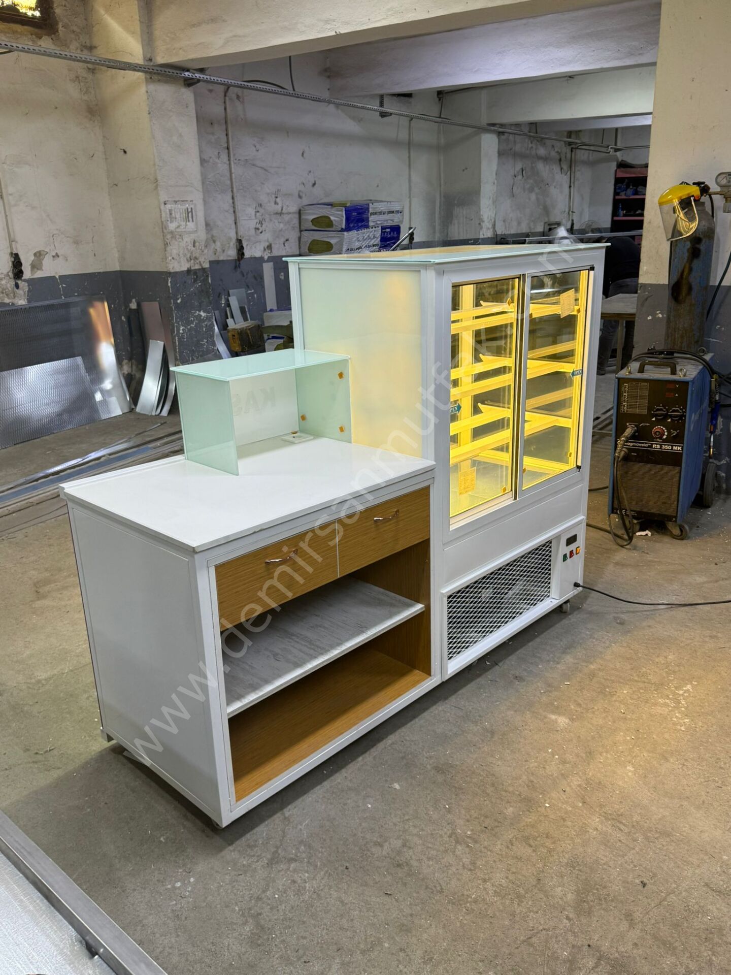 Pastane Tipi Pasta Teşhir Banko Dolabı – Kasa Bölmeli Modern Servis ve Vitrin Ünitesi DM101