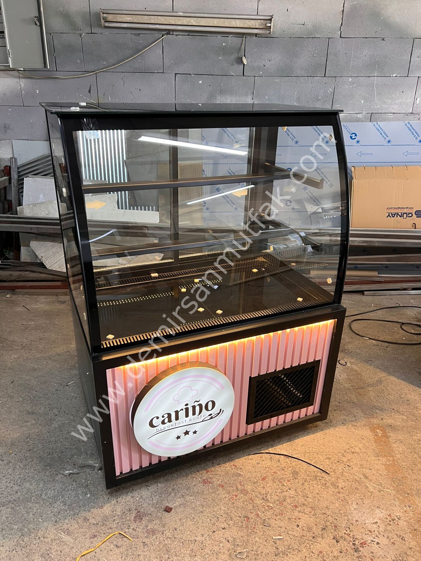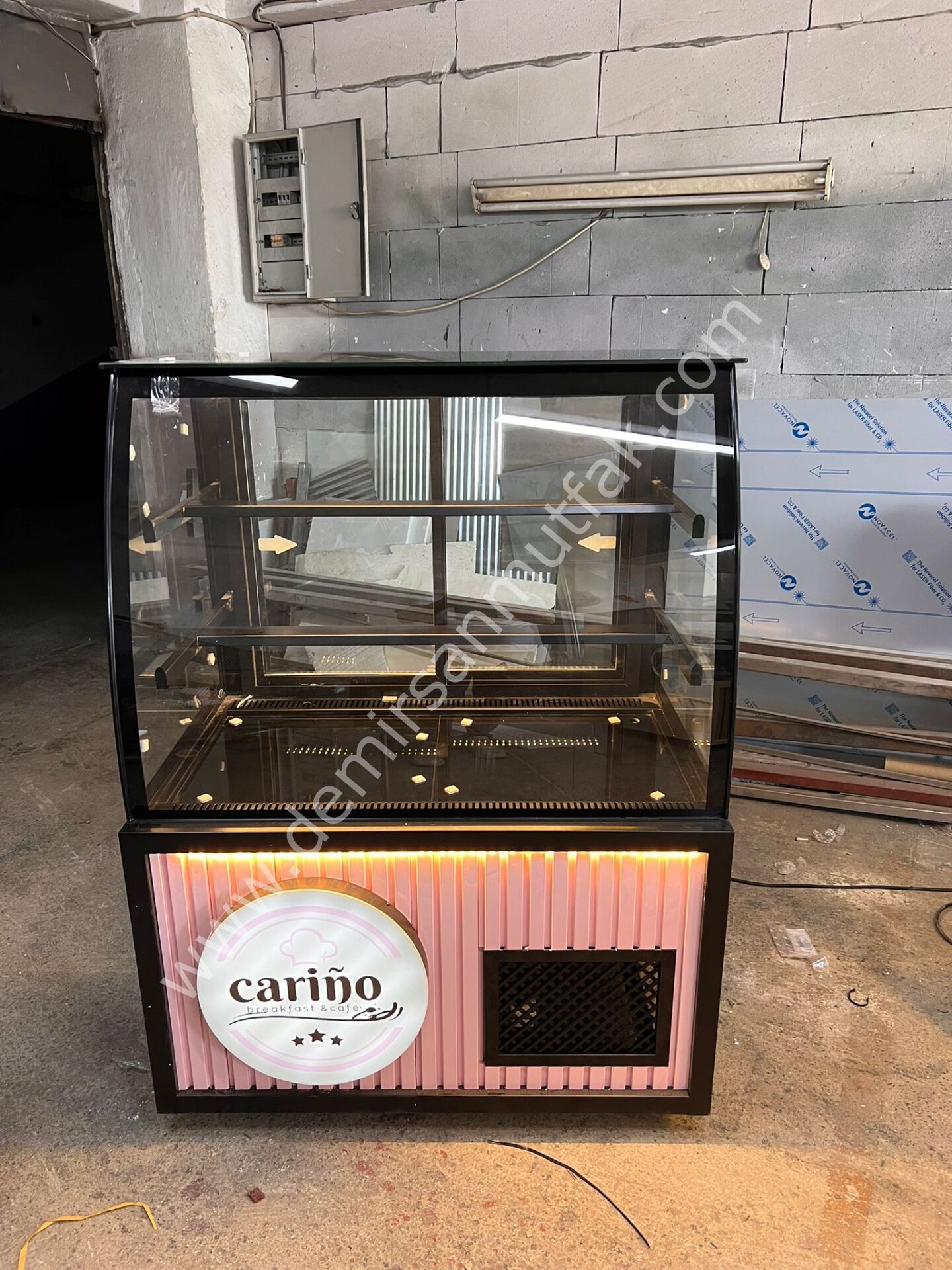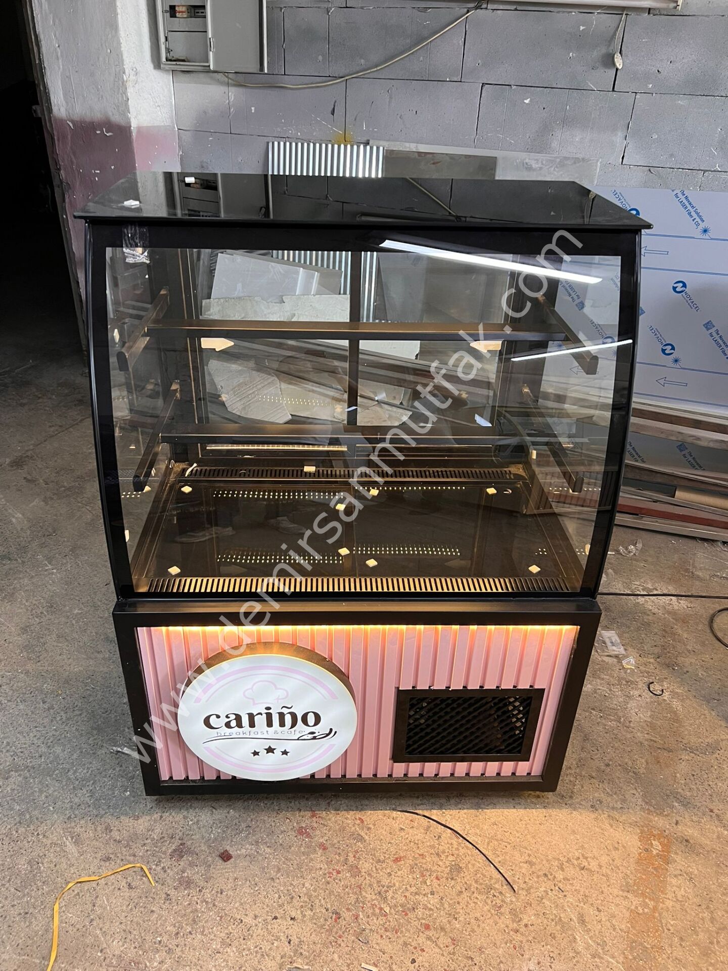 Pembe Dekorlu Pasta Tatlı Dolabı | LED Aydınlatmalı Modern Pasta Teşhir Vitrini – DM022