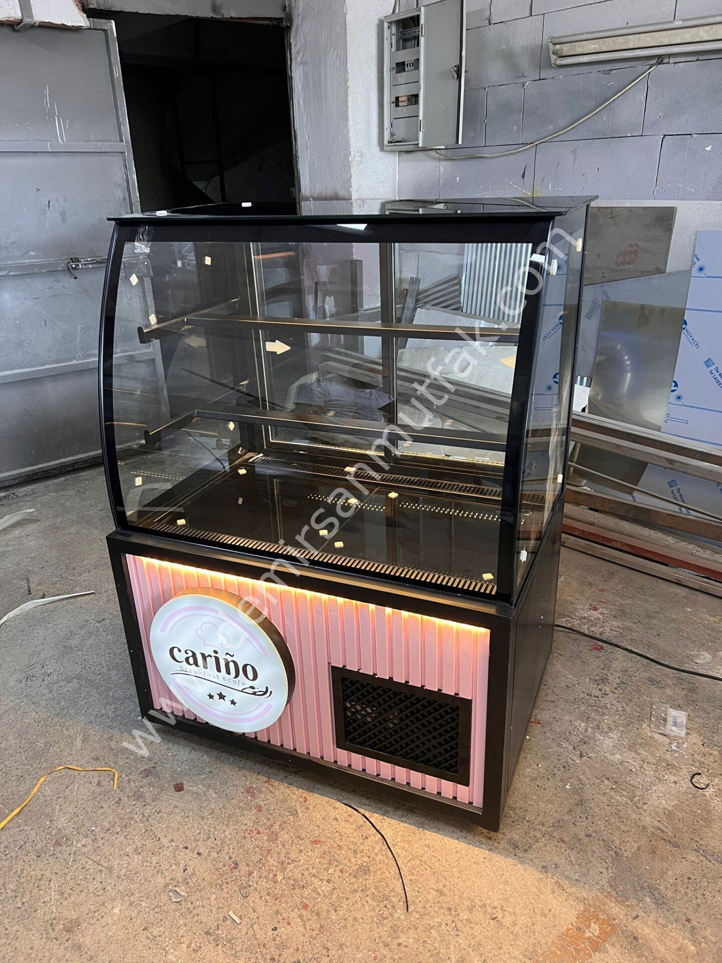 Estetik detayları ve dikkat çekici pembe dekor tasarımıyla öne çıkan bu pasta tatlı dolabı, işletmenizin vitrininin sadece bir teşhir alanı değil aynı zamanda güçlü bir görsel çekim noktası olmasını sağlar. Özellikle konsept kafeler, butik pastaneler ve modern tatlı mağazaları için tasarlanan bu model, mekâna sıcak ve davetkar bir atmosfer kazandırır.