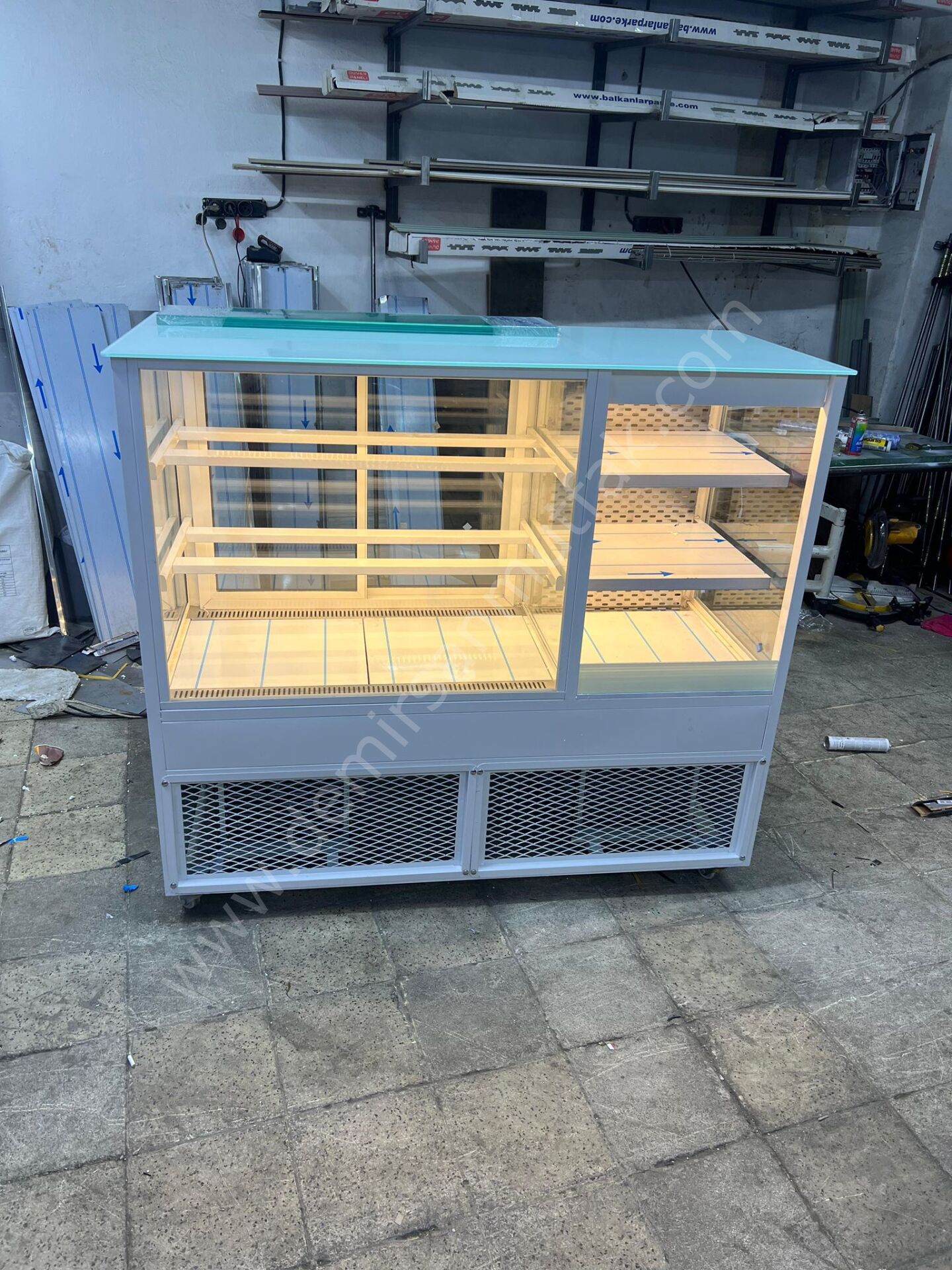 Optimize edilmiş iç hacmi; yaş pasta, kuru pasta, sütlü tatlılar, butik pastacılık ürünleri ve günlük üretimler için düzenli bir sergileme alanı sunar. Dengeli LED aydınlatma sistemi ürün renklerini doğal şekilde öne çıkarırken vitrinde daha parlak ve premium bir görünüm elde edilmesine yardımcı olur.