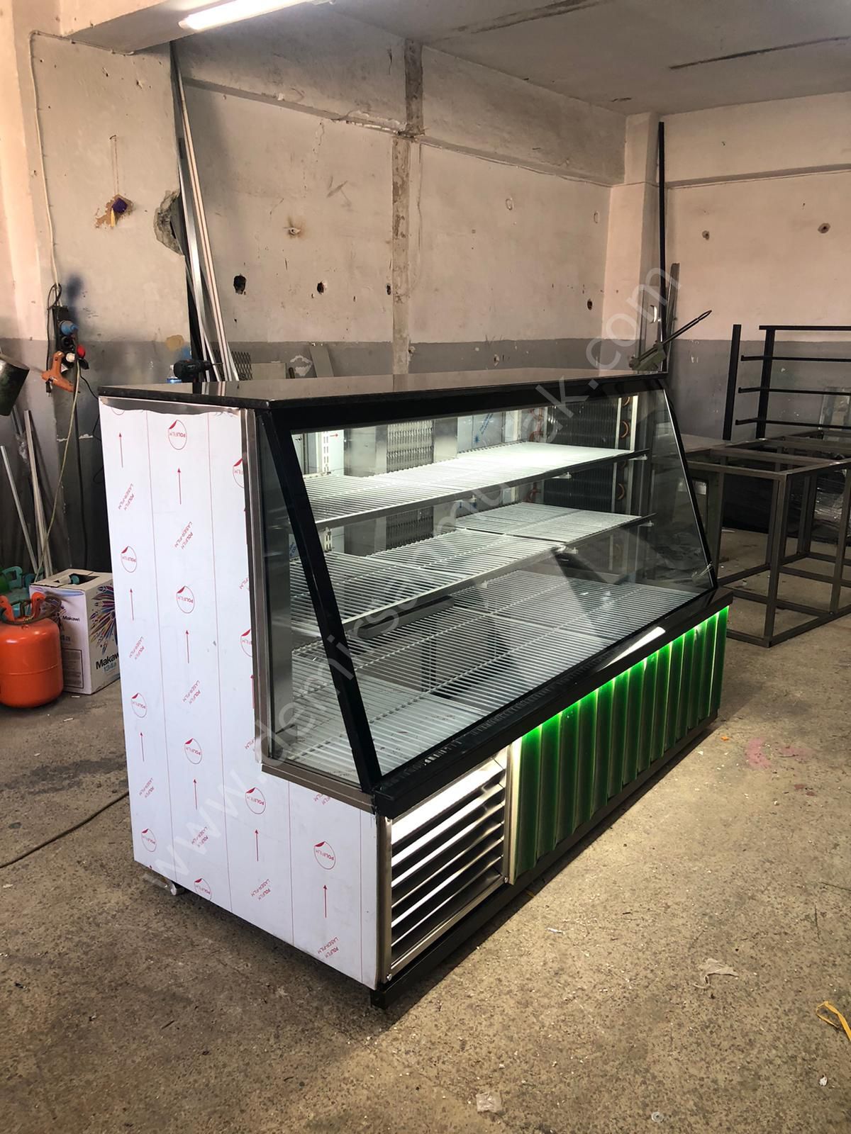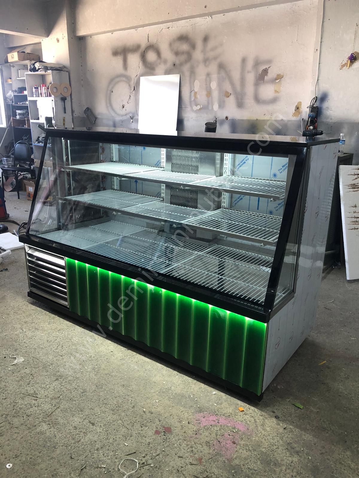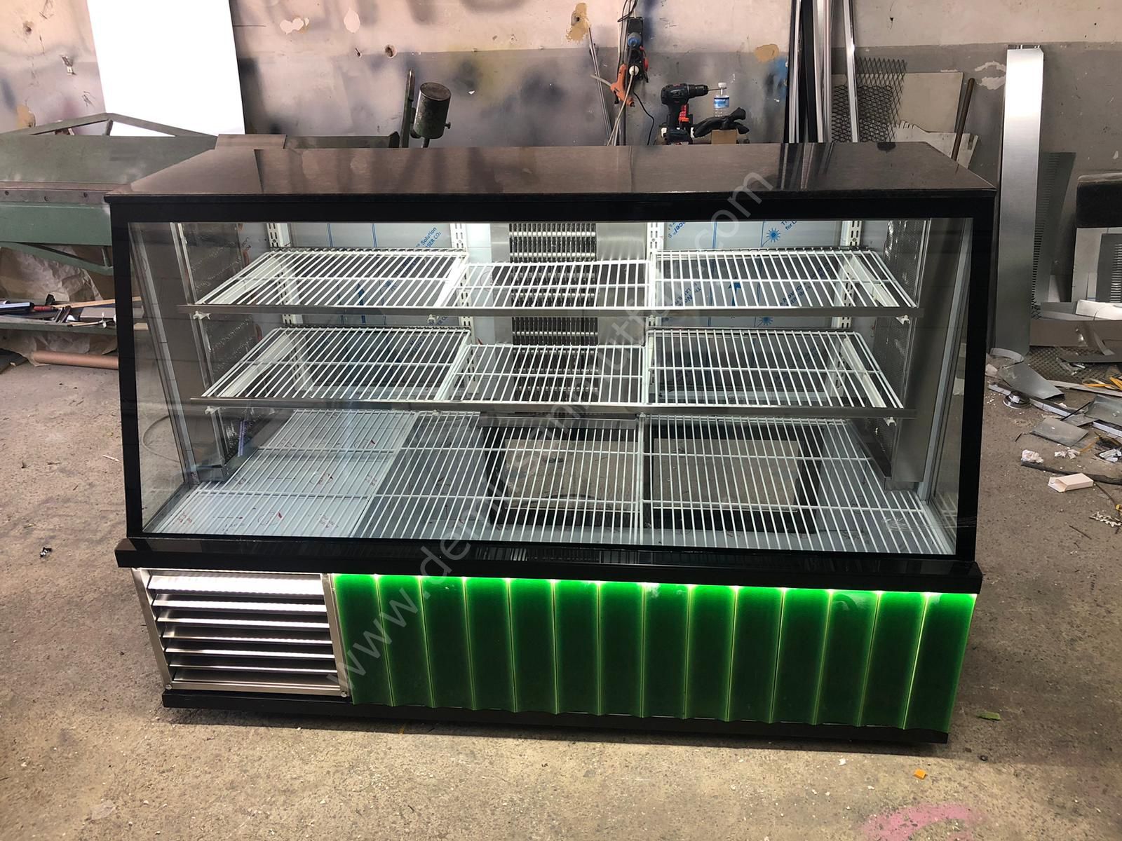 Modelin ön bölümünde kullanılan modern dekor panel ve yeşil LED aydınlatma detayı, klasik teşhir dolaplarından ayrışan dikkat çekici bir görünüm oluşturur. Enerjik ve çağdaş tasarım çizgisi, işletmenizin daha yenilikçi ve profesyonel algılanmasına katkı sağlar. Güçlü aydınlatma, ürünlerin doğal rengini ön plana çıkararak tazelik hissini artırır ve müşteride güven oluşturur.