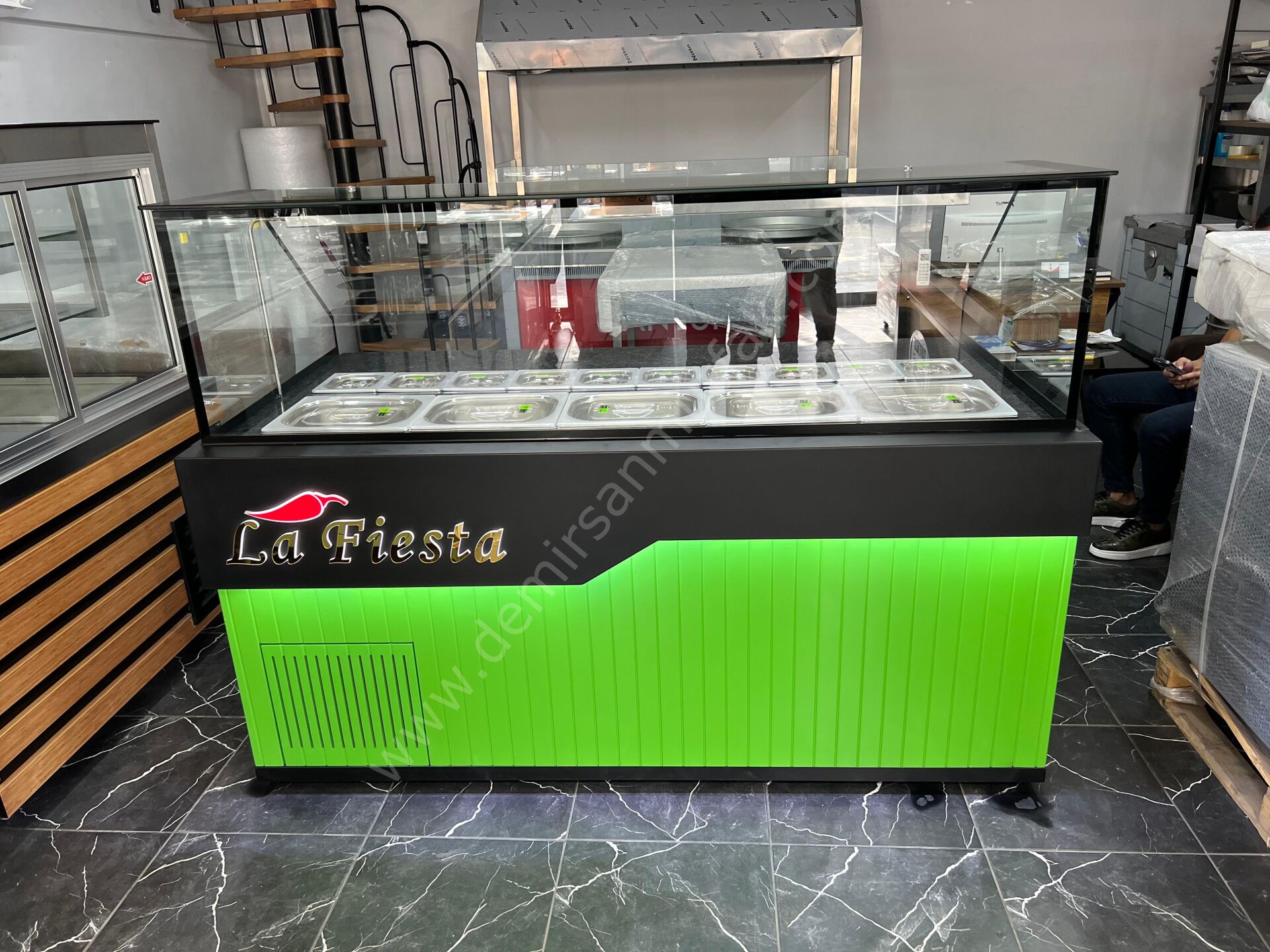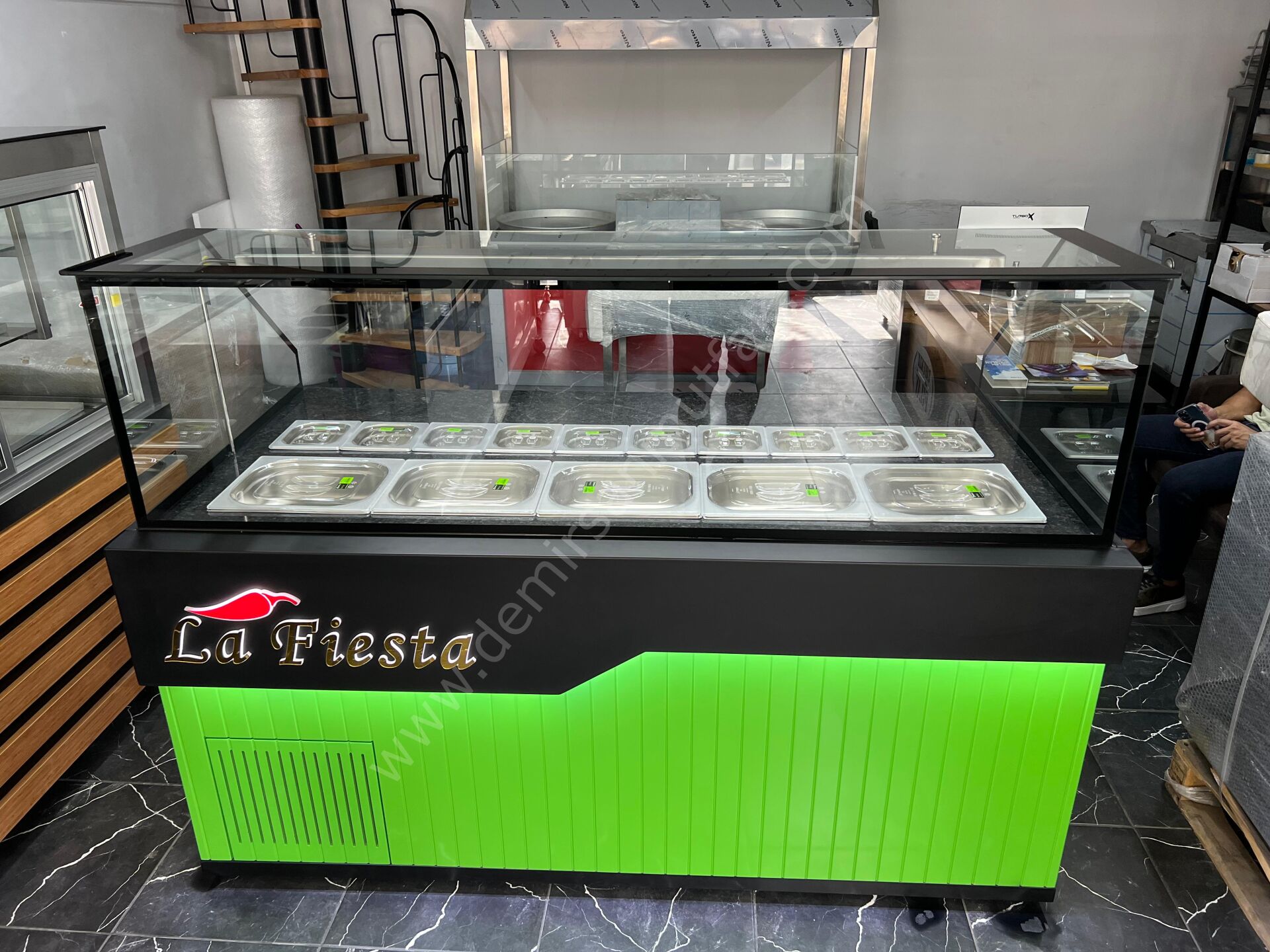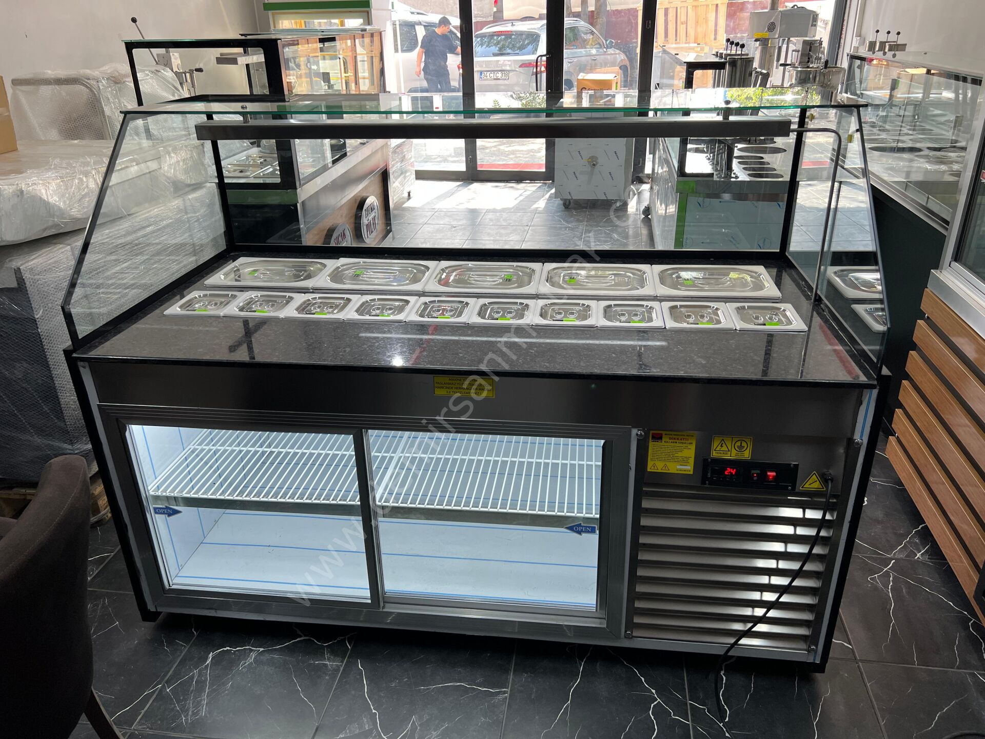 Panoramik cam yapısı sayesinde ürünler her açıdan rahatlıkla görülebilirken, paslanmaz küvet sistemi farklı içeriklerin düzenli biçimde konumlandırılmasına imkan tanır. Modern hatlara sahip güçlü gövde yapısı yoğun işletme temposuna dayanıklılık gösterirken, ergonomik kullanım alanı personelin servis konforunu artırır.