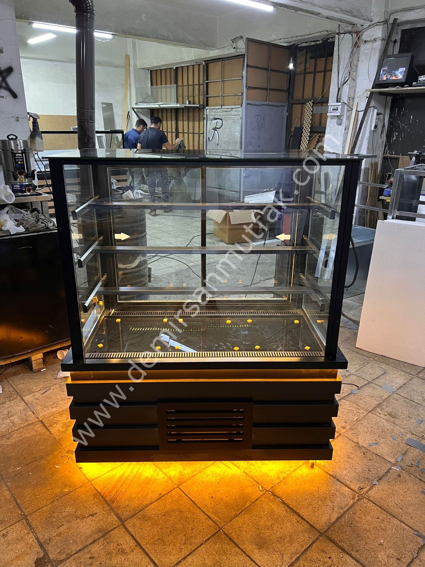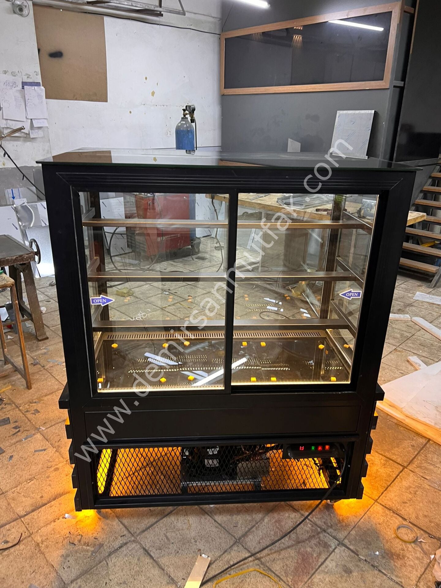 Siyah Modern Pasta Teşhir Dolabı | LED Aydınlatmalı Profesyonel Vitrin – DM017